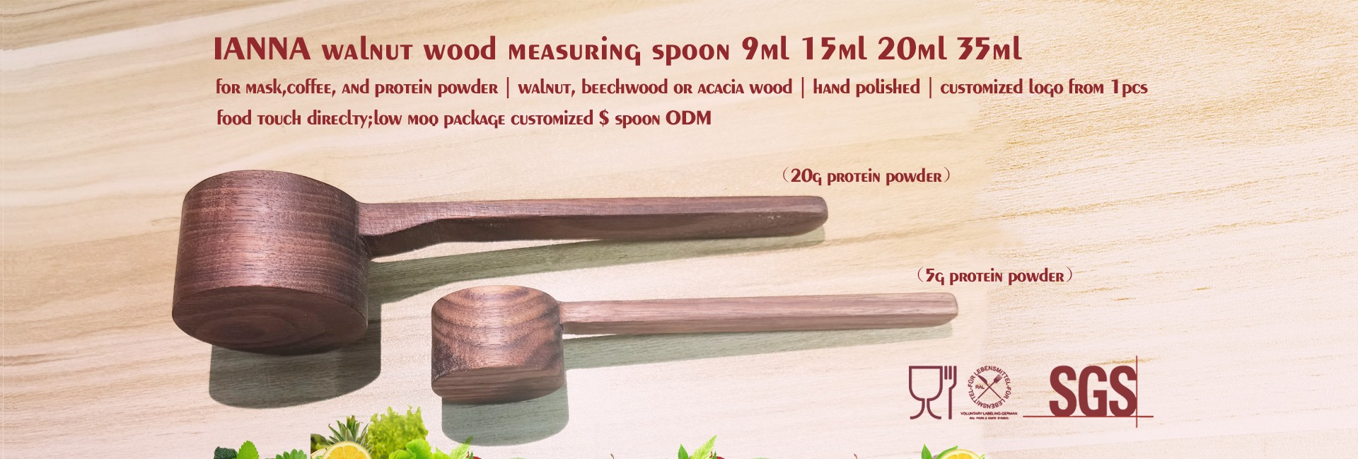 IANNA Grabado logo Naturaleza Nogal Cuchara medidora de madera E-friendly Cuchara de madera de nogal Máscara de café Cuchara en polvo