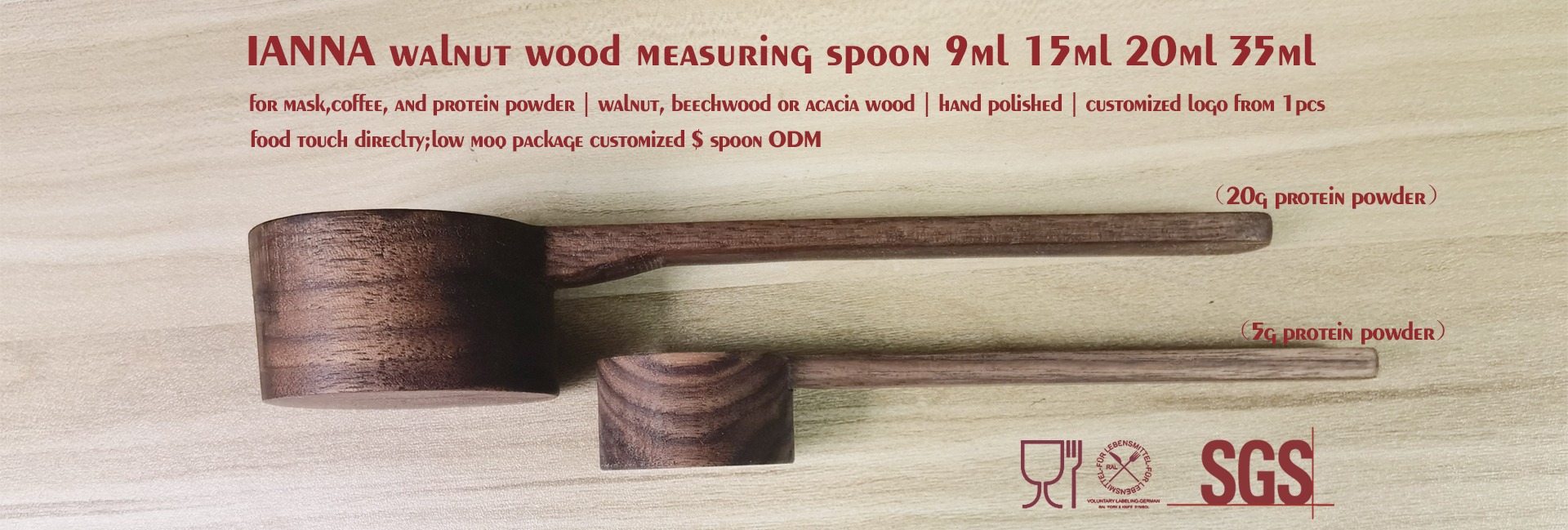 IANNA Grabado logo Naturaleza Nogal Cuchara medidora de madera E-friendly Cuchara de madera de nogal Máscara de café Cuchara en polvo
