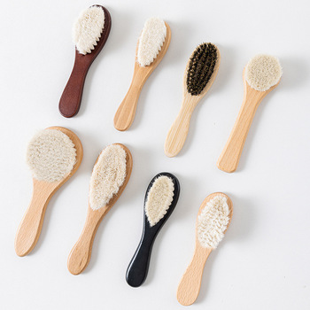 Özel Logo bebek saç vücut banyo fırçası ahşap vücut banyo yün fırça yumuşak dokunmatik saç bebek bakımı için